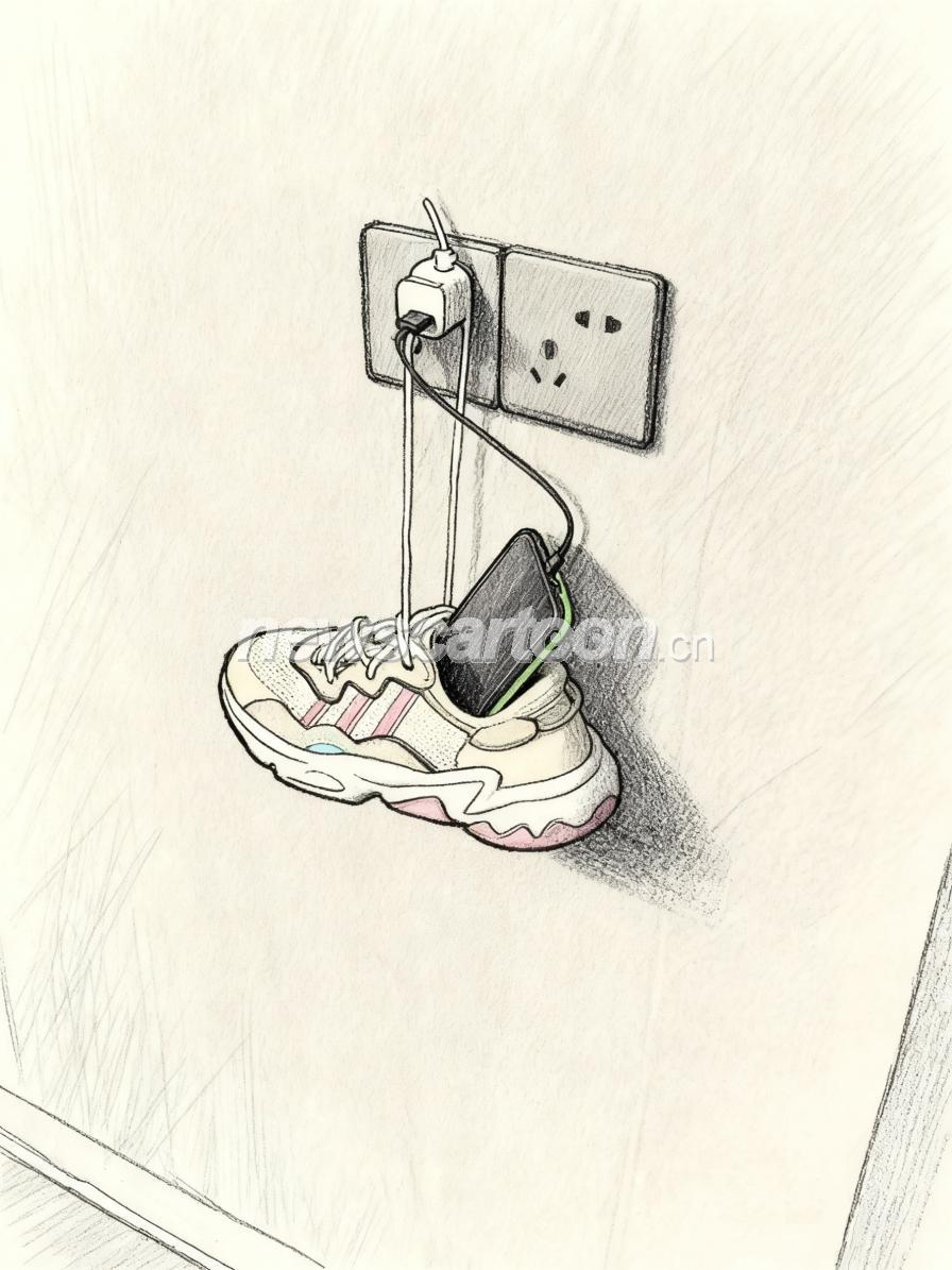 在数据线不够长的情况下,通过一只鞋就可以完美解决手机充电问题。