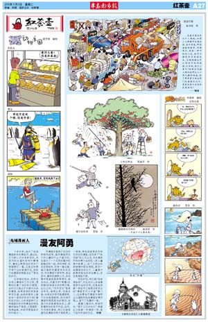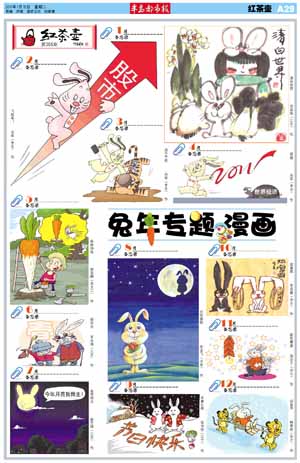 如果各种报刊杂志漫画版的编辑 都能像洪琥编辑老师这样把自己的"责任田”《红茶壶》漫画版样,放在贵网上,更方便供作者投稿,供漫友老师交流.学习.欣赏......能在此多放几个“《红茶壶》”一定会受欢迎的!渴望兔年各种“茶壶”蒸蒸日上