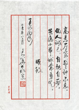 何君华 (1930.10—)江苏徐州人。擅长油画、中国画、漫画。1950年参加解放军,从事舞台美术及宣传工作。历任北京房山评剧团舞台美术设计,房山师范美术教师。中国美术家协会会员。作品油画《冬天的早晨》、漫画《透视》、《蹉跎岁月》、《某君过后》等分别入选1973年、1977年及第六、七届全国美展。何君华客居北京近五十载。自幼爱画,从事过舞台美术及美术教师等工作。对油画、国画、漫画等,皆有所涉猎。曾多次在国内外举办个人画展,并多次获奖。《美术家何君华》由中国美术家协会“中国艺术家新成就丛书”编委会编辑出版。收入作者绘画作品,小品画及漫画作品计40件。何君华晚年有幸得宽余,又对小品画产生了浓厚兴趣。每有所思,即兴挥毫,直抒胸臆,颇有一画为快之感。传略入编《中国现代美术家人名大辞典》、《中国当代艺术界名人录》等辞书。