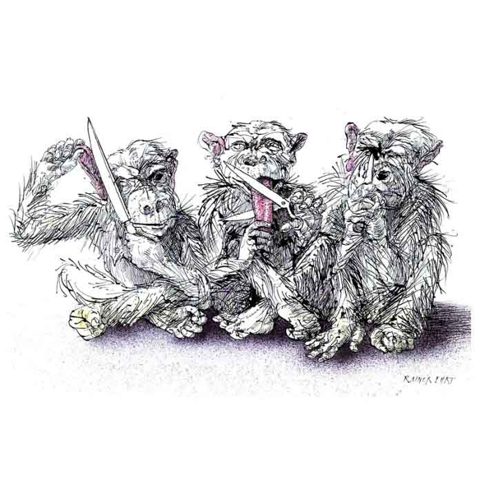 我想,首先是因为他有更多的几十项大奖属于自己独立的创意,再者他有着自己个性鲜明的成熟的艺术表现语言。这些组委会的评委们是明智的、宽容的。他们很清楚漫画这个“玩智慧”的画种只要有一天存在就不会绝对避免“撞车现象”,画得越多,出现撞车的可能性就越大、雷同作品数量就会更多。因为漫画与其他艺术门类相比较,其他艺术门类思想更宽泛,他们可以表现多个面、多个空间,多条线,最多精确到一条线、多个点,而漫画构思必须最后精确到一个点--幽默点。我们都清楚:这很难!所以,评委们对漫画艺术创作都有着深刻的体会和理解,他们相信加托先生的人品,一个成熟的漫画艺术家不会故意抄袭别人的创意,因为他有更多的属于自己的智慧之作在不断呈现给读者。我本人也仍然相信他的人、他的画是属于自己的,生命个体生活在相似的环境中,艺术创作里偶然的灵感呈现发生在不同的生命视野中而出现相似是必然的。我觉得任何一个漫画人只要终生致力于漫画艺术创作就逃不过思想“撞车”的发生,纵观国内外漫画创作领域,又有哪个创作者能够绝对避免呢?即使今天没有,也许明天就会出现。对故意抄袭现象我也是深恶痛绝的!坚决不做“贼人”,尽一切可能避开“撞别人”就够了!一旦发生就平静的接受由此带来的后果,悄悄对着自己的良心说:“我不是故意的……”,坦然听从“天命”……