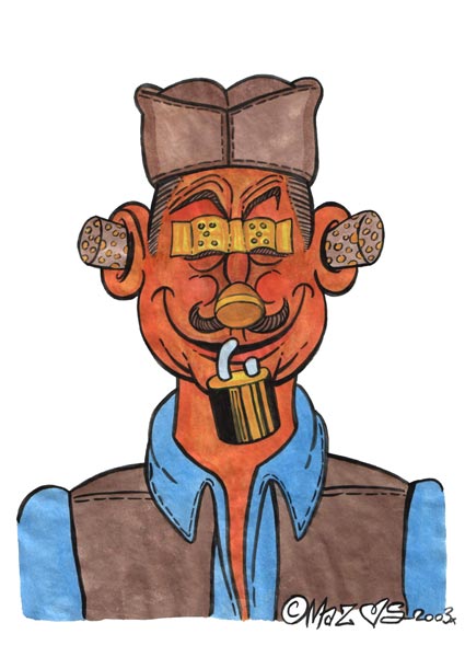 一方宣纸,几笔淡墨,一个惟妙惟肖的人物漫像就活脱脱地跃然纸上——这就是著名漫画家禹天成先生笔下的水墨漫像。