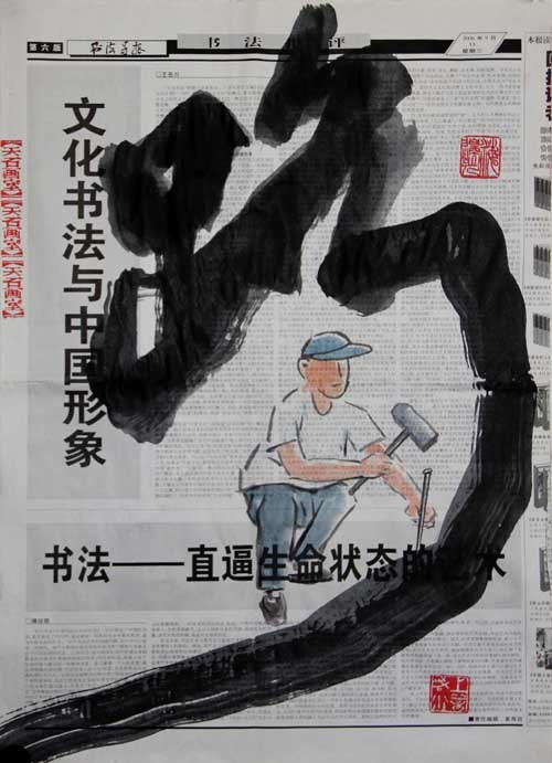 2012年由山东省漫画家协会主办,临沂市直书法家协会、临沂市漫画家协会、临沂市水墨漫画院承办的全国书法漫画大赛给我们留下了深刻印象。书画同源,相信这次命题活动给漫画家们的思维上带来新的延伸,也提高了大家对书法的理解。我就是这次活动的受益者之一。