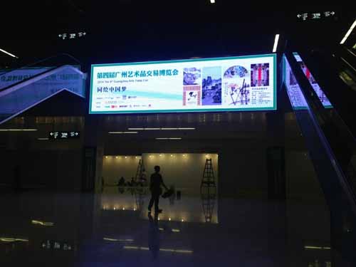 今天下午我的策划人冒雨前往广州白云国际会议中心,在微博上说,看到2014第四届广州艺术品交易博览会组委会工作人员和帮工紧锣密鼓、热火朝天地布置会展,甚是痛快!3号楼的大型LED屏幕上,也上了汕尾籍画家陈石松先生的作品——《篱边挺立意飞扬》,甚是快慰!另,在彭总和阿林兄弟的努力下,此届艺交会共展出陈老师十二幅四尺斗方的作品,十分感谢!不到现场看罢就是不放心,如愿。耕韵斋加油——宽哥你懂的!23日至26日,约定你,广州白云国际会议中心3号楼见。