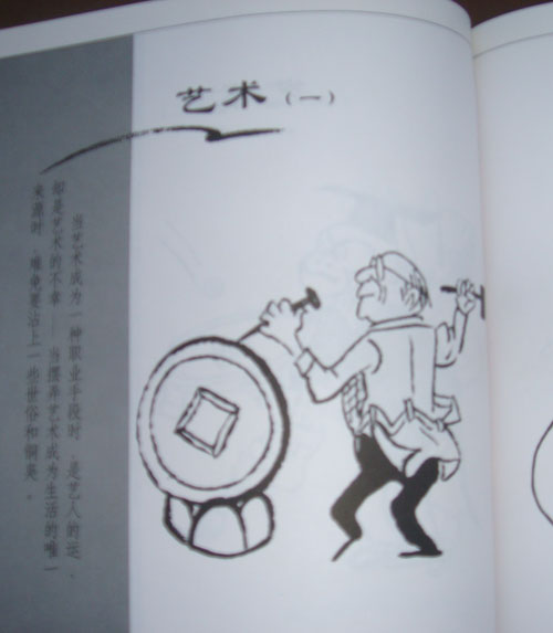 这里上传吕士民先生图书《画里有话》中的一两幅画,其特点是,虽然是给文字作图,但是,画却很有漫画的独立艺术性。图书里的画基本上都是这样一个风格。这样的漫画用功,真正是在追求艺术的价值,现在已经很少见这种至善至美的艺术观念了。