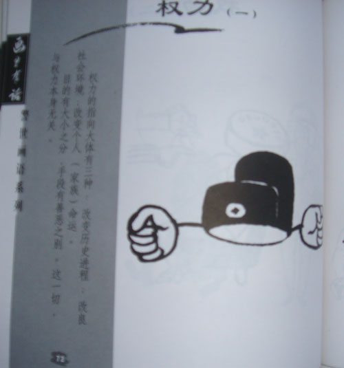 作为风格,张强画的这种形式,也并非张强现在所独创,漫画界里早就有了。近期有书,王蒙的文,吉建芳的画,就是这种形式,再远一点的,安徽漫画家吕士民与他人合作的书《画里有画》也就是这种。很多。而吉建芳尤其是吕士民这样的画家,有才气,有创作经验,所以就不仅仅是插图了,某些画也有独立漫画的特征。张强自己见识少了,沾沾自喜,狂妄自大,把李向东辱骂得一无是处,确实太没有道理了。教授此时出来说句平心而论、凭艺而论的话,对于知事者、知艺者来说,应该是有教育意义的。