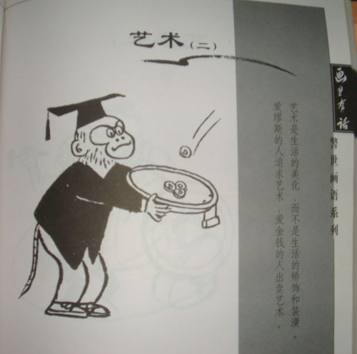再上传吕先生《画里有话》中的一幅漫画,猴子装逼弄点钱钱的讽刺,猴子装逼弄艺术,未必不被遭讽刺之嫌。