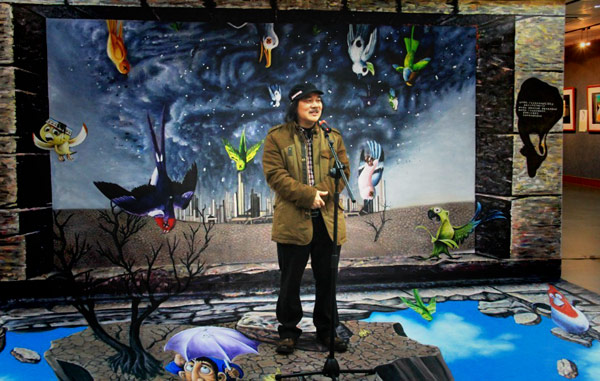 这次展览最大的亮点就是佛山首家立体画公司交换空间所创作的立体漫画《无题》。