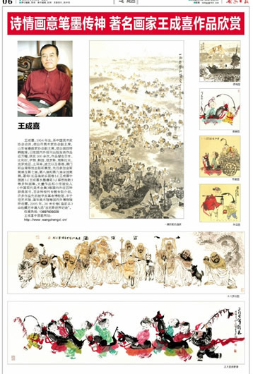 王成喜系中国美术家协会会员,烟台市美术家协会副主席,山东省漫画家协会副主席,著有《王成喜中国画》、《长岛渔家乐图卷》、《王成喜水墨漫笔》、《禅思抱散》(与贾平凹合作)等图书画册。大量作品和小传被收入《中国现代美术全集》等国内外近百种辞典图书。其中,36米长卷的《渔家乐》以中国画直画之最申请入选“吉尼斯世界纪录”。举报 回复# 4楼