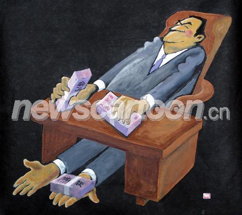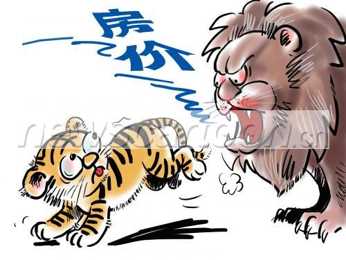 古人写诗词中,也有死用典,用典死的情况。张先生用典在于创作,如果画面中不画出老虎,即使题目写“房价猛于虎”,典故也是死引。画面中有虎,不仅是活引,而且是巧引,画中有狮子,狮子猛于虎,就机巧之极了。几乎所有的绘画形式都不能像漫画这样显示画家的智慧机巧,这就是漫画家能够自立、自杰、自傲之所在。读了张先生这画,难道你不能如此感觉么?