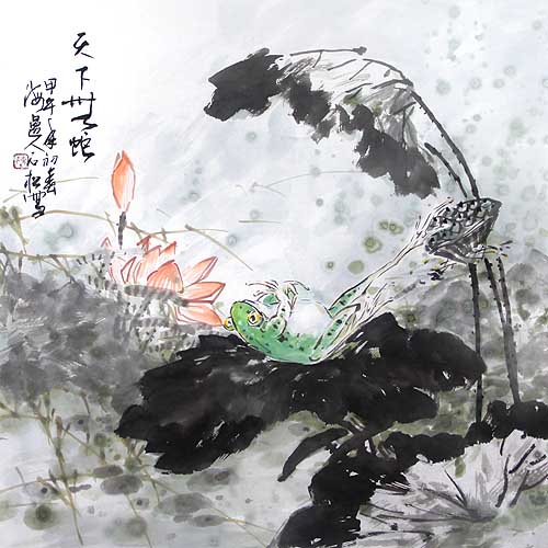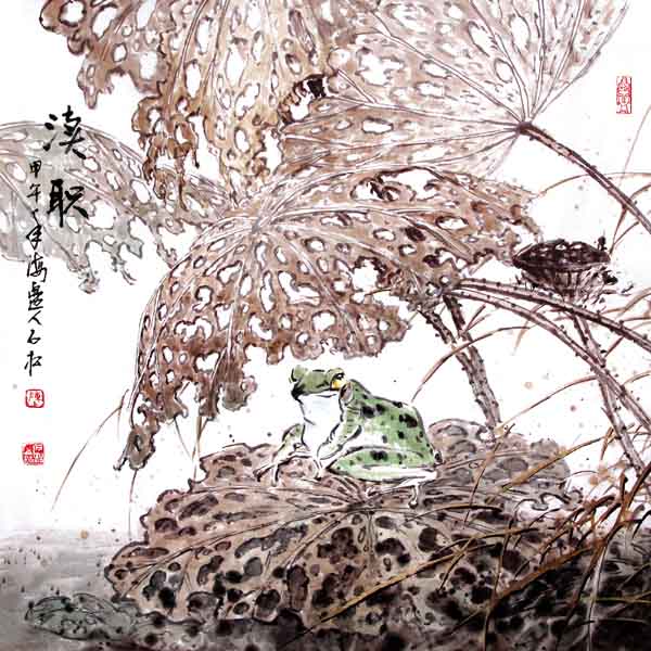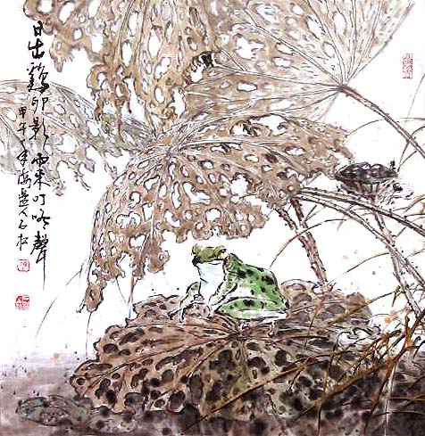 “渎职”二字肯定不如原来诗句好。原来诗句是写的自然景物,画所描绘的是自然景物,所以诗画相符,可以提升境界。“渎职”是人的行为,画里无人,题画难融也。在文学作品里,讲童话,如果设计青蛙当看守,荷叶被虫吃得大眼小框的,青蛙肯定是渎职。国画讲不出这么多童话故事来,看画的人,肯定没几个人认为青蛙有渎职行为。青蛙与害虫是天敌关系,不存在人类社会组织行为。任何人看画,都会认为自己在看国画。“渎职”题目却按漫画思路来,大概只有作者特别注明自己画的是漫画,可能会有同好附会为漫画。也可能有很多人仍然不会觉得自己是在看漫画。作者自己都说自己在画漫画,为什么读者仍然会有自己的独立见解呢?这是读者自己的智商决定,他们又没受到指鹿为马的政治威胁,他们为什么要降低自己的智商呢?