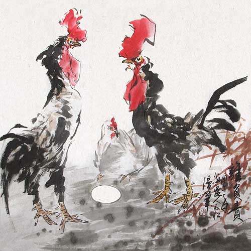 至于这幅水墨以鸡喻男男女女的责任,是雅是俗,我就不研究了,提供在这里,也就是大家都可以研究的意识。当然,也还可以引出另外一个话题,“鸡”在表现男男女女的文学里并不见雅,在水墨里用以表现男女能够见雅?