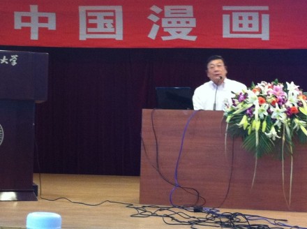 图为中国美协漫画艺委会主任、著名漫画家徐鹏飞作学术报告